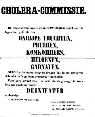 ![Een kaart, aanwijzende de verspreiding der cholera en het aantal sterfgevallen aan deze ziekte in elk der 50 buurten van Amsterdam.[1]](./Kaart_aanwijzende_de_verspreiding_der_Cholera_en_het_aantal_sterfgevallen_aan_deze_ziekte_in_elk_der_50_buurten_van_Amsterdam_COLLBN_Port_27_N_82%252C_COLLBN_Port_27_N_82.tif.jpg)