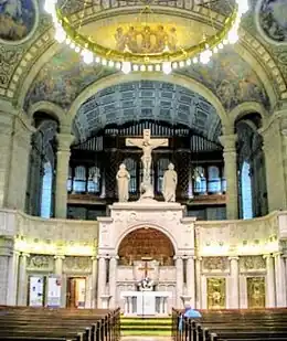 De centrale tamboerkoepel wordt met een lantaarn bekroond, waarop een verguld beeld van de aartsengel Michaël van de beeldhouwer Wilhelm Gerstel staat. De tamboer wordt omgeven door gote beelden van de 12 apostelen.