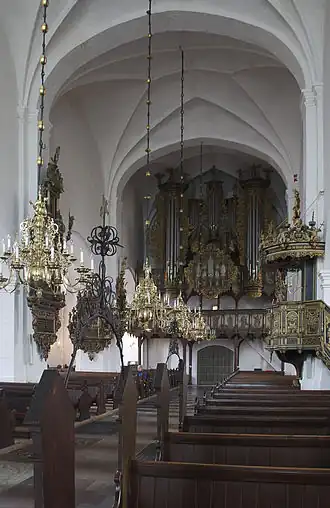 Het grootste deel van de inrichting stamt uit de periode van na de nieuwbouw. De kerk heeft een bijzonder rijk interieur, hetgeen te danken is aan de rijke kooplieden van Tønder, die handelden in graan, vee en kant.