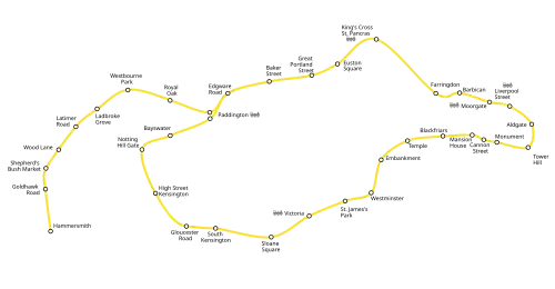 Tot 13 december 2009 was de Circle line een rondlopende dienst zonder eindpunten. Sindsdien is de lijn uitgebreid met een deel van de Hammersmith & City line. De treinen komen tijdens de rit twee keer door Paddington en Edgware Road. Wie als vanouds de cirkel wil volgen, stapt in Edgware Road over.