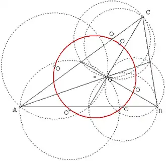 Voor een willekeurige driehoek ABC en een willekeurig punt G in de driehoek geldt het volgende. De rechten AG, BG en CG verdelen de driehoek in zes kleinere driehoeken. De omgeschreven cirkels van die zes driehoeken hebben middelpunten O1, O2, O3, O4, O5, O6. Die zes middelpunten liggen op een cirkel als en slechts als het punt G het zwaartepunt of het hoogtepunt is van de driehoek ABC. Die cirkel heet dan cirkel van Van Lamoen.