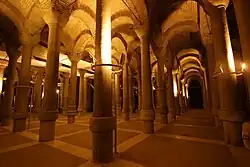 Het dak van de cisterne wordt gedragen door 224 marmeren kolommen van 14 tot 15 meter hoog. De kolommen bestaan elk uit twee delen die worden gesloten door een marmeren ring, de vloer is later opgehoogd waardoor van de onderste kolommen enkel het bovenste deel te zien is. Alle kolommen dragen een Grieks Steenhouwersmerk.