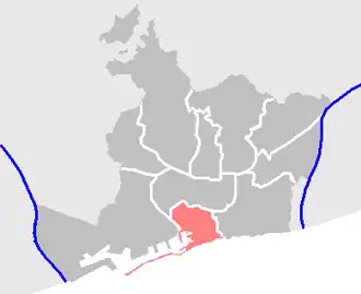 Het omvat de wijken Barri Gòtic (Spaans: Barrio Gótico), met bezienswaardigheden en monumenten, El Raval en El Born (Spaans: El Borne), een hippe buurt in het centrum met exclusievere kledingboetiekjes en trendy bars. Ook de van oorsprong vissersbuurt La Barceloneta en het oude gedeelte van de haven van Barcelona horen bij dit district.