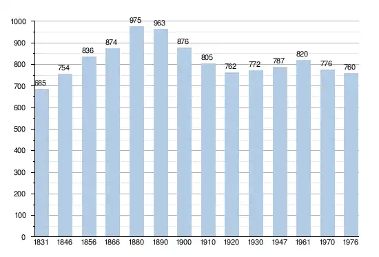 - Bronnen:NIS, Opm:1831 tot en met 1970=volkstellingen, 1976= inwoneraantal op 31 december