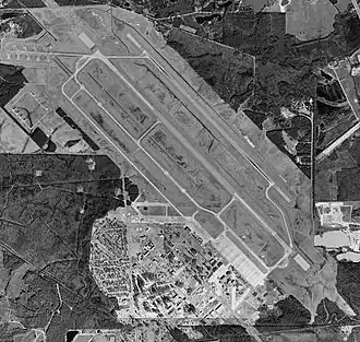De onderstaande figuur toont nabijgelegen plaatsen in een straal van 24 km rond Columbus AFB.