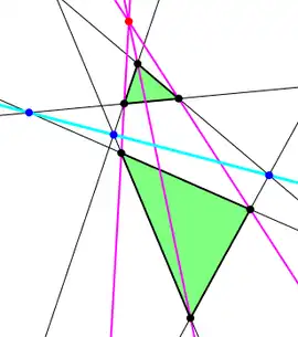 Het kan met behulp van een incidentiematrix worden vastgelegd welk punt op welke lijn ligt. De driehoek wordt als genoteerd en het Fano-vlak als . De ruimte, waarin de punten liggen, hoeft geen euclidische ruimte te zijn.