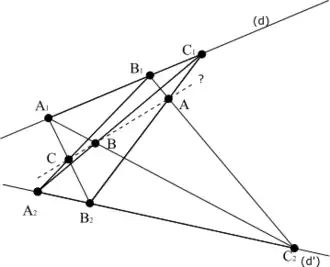 De projectie op het platte vlak speelt een rol in de driehoeksmeetkunde bij de kruisingsdriehoek.