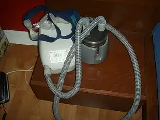 Tegenwoordig echter gebruikt men hiervoor kleine apparaten met daarin een pomp, die een regelbare druk geven van 4 tot 20 cm H2O (390 tot 1960 Pa) . Aan het uiteinde van een daaraan aangesloten flexibele slang bevindt zich een masker, dat ofwel alleen de neus of neus en mond bedekt. Deze CPAP's bestaan in diverse varianten, met als belangrijkste verschil een vaste of een automatische (APAP) instellingsdruk. Deze laatste geven dan meer of minder druk naargelang de obstructie gedurende de nacht. Ook zijn er typen die actief de adem ondersteunen bij uitademing (BiPAP).