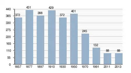 - Bron: INE, 1857-2011: volkstellingen