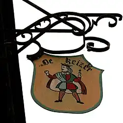 - ↑ De betekenis van het woord herberg werd smaller in de loop der jaren. Tegenwoordig associeert men het met een drinkplaats of café. Vroeger kon men in een herberg overnachten (logementshuis, afspanning of aubergie), vergaderen, besturen of recht spreken zoals in De Keizer. Gildehuizen en schutterschoven waren gefatsoeneerd (wat De Keizer gezien zijn naam wellicht was), in tegenstelling tot de 'ondeugende' drankslijterijen.