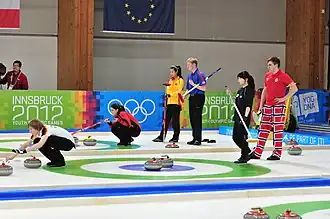 Curlingteams in actie op de Olympische Jeugdwinterspelen 2012