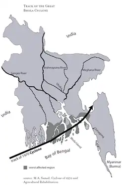 De Pakistaanse regering, in die tijd onder de leiding van generaal Yahya Khan kreeg stevige kritiek te verduren van de politieke leiders in Oost-Pakistan en de internationale media, omdat het lang duurde voor er reddingsoperaties in gang werden gezet. Mede hierdoor werd de Bengaalse vrijheidsoorlog in gang gezet, die er uiteindelijk toe leidde dat Bangladesh een zelfstandige staat werd. In reactie op de cycloon organiseerde ex-Beatle George Harrison in samenwerking met de Bengaalse muzikant Ravi Shankar in 1971 The concert for Bangladesh, een van de eerste benefietconcerten in de wereld, om geld in te zamelen voor reddingsoperaties.