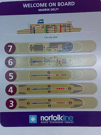 - ↑ DFDS D-Class deck plan. DFDS Seaways (21 september 2021).