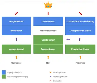 In een Nederlandse gemeente is het college van burgemeester en wethouders het dagelijks bestuur, zij legt verantwoording af aan de gemeenteraad. In een Nederlandse provincie is het college van Gedeputeerde Staten het dagelijks bestuur, zij legt verantwoording af aan Provinciale Staten. In een openbaar lichaam Bonaire, Sint Eustatius of Saba is het bestuurscollege het dagelijks bestuur, zij legt verantwoording af aan de eilandsraad. Het dagelijks bestuur van een Nederlands waterschap wordt gewoonweg 'dagelijks bestuur' genoemd en legt verantwoording af aan het algemeen bestuur.