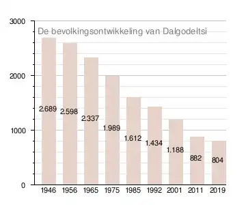 In de eerste officiële volkstelling van 1934 telde het dorp 2.689 inwoners. Twaalf jaar later verminderde het inwonertal met circa 100 personen naar 2.598 personen in 1946. Sindsdien neemt het inwonertal continu af: in 2019 telde het dorp 804 inwoners.[1]