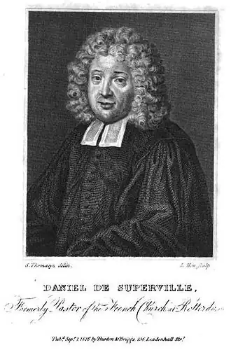 - ↑ a b c d e f L. Knappert, "Superville (Daniel de) (1)" in Philip Christiaan Molhuysen, Petrus Johannes Blok et al. (eds.), Nieuw Nederlandsch Biografisch Woordenboek, deel 5, p. 839-841