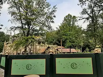 De wachtrijen beginnen bij een gemetselde poort, waar aan de ene kant een zwarte kat met een bewegend hoofd zit, die in het verhaal bekendstaat als "het Onnoembare". Aan de andere kant van de poort staat een sculptuur van een monnik. Achter de poort komen bezoekers in de Kruysgang, een overdekte doorgang met een houten dakconstructie en vuurschalen die afkomstig zijn uit het voormalige Spookslot.[39] Vervolgens lopen de bezoekers door de Kruydentuyn, waar volgens het verhaal monniken vroeger hun kruiden verbouwden. Hier staan ook enkele potten uit het voormalige Spookslot.[39] De route leidt naar een stevige houten poort, waar een personeelslid gedoseerd bezoekers doorlaat. Achter deze poort ligt het kerkhof, met graven van de overleden orkestleden en een mausoleum met een beeld van Joseph, de dirigent. Ook is er een houten deur die begint te klapperen wanneer iemand probeert deze te openen, een element dat eveneens uit het Spookslot komt. Ondertussen vertelt een vertelstem (ingesproken door Raymond Thiry) het achtergrondverhaal van de attractie. Zowel de Kruydentuyn en het kerkhof zijn geen onderdeel van de single riders-rij.