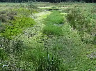 In het droge bosgebied ligt een poel die gevoed wordt door kwelwater. Dit beschikbare grondwater is van belang voor dieren zoals o.a. reeën.