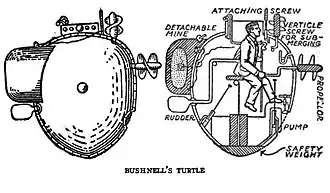Ook ontwikkelde Bushnell een eenpersoons-onderzeeboot, die hij "Turtle" doopte. In zijaanzicht had deze de vorm van een walnoot.[1] maar in het water leek het op een schildpad. In 1776 werd deze onderzeeër voor het eerst ingezet in de rivier de Hudson bij New York.