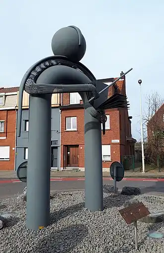 De De Literatuurbespeler is een beeld van recyclagekunstenaar Stef Van Eyck op de rotonde Driehoekstraat, Boerendijk en Jaak van Haesendonckstraat in het Antwerpse district Ekeren.