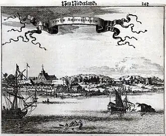 - ↑ Arnoldus Montanus (1671). De nieuwe en onbekende weereld: of Beschryving van America en ’t Zuid-Land: vervaetende d’oorsprong der Americaenen en Zuidlanders, gedenkwaerdige togten derwaerds…/, verciert met afbeeldsels na ’t leven in America gemaekt, en beschreeven door Arnoldus Montanus. Amsterdam: Jacob van Meurs.