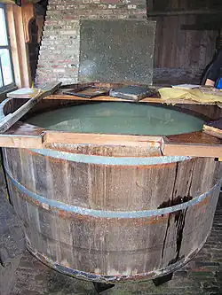 Hierna gaat het product via een goot uitlekken in zogenaamde verzijgkasten met een houten vloer, waardoorheen het water uitlekt. Deze verzijgkasten worden in perioden met veel wind gevuld en in tijden met minder wind geleegd.