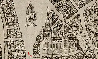 - ↑ Op 20 november 1622 werd de jezuïet Maillart in het huis van de Lijsbet en Geertruijd Bick aan de Kerksteeg gevangengenomen in opdracht van de baljuw Anthony Cloots, een ketterjager (Xander van Eck in: Kunst, twist en devotie, Goudse katholieke schuilkerken 1572-1795, blz.125, uitg. Eburon, Delft, 1994 ISBN 90 5166 408 7)