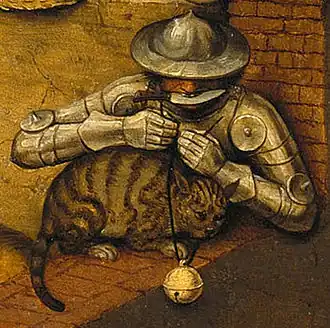 - ↑ a b c Waar komt de kat de bel aanbinden vandaan?. Onze Taal. Gearchiveerd op 18 september 2020.