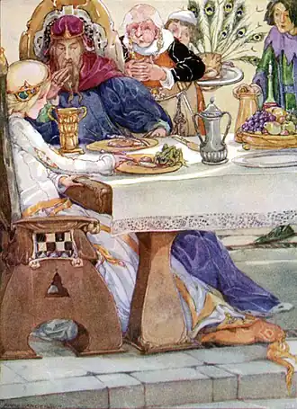 De verloste prins geeft in deze versie zijn prinses bij zijn afscheid een doek met zijn naam geschreven in rood, wat zwart zal veranderen als hij haar ontrouw is.