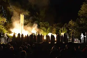 De 55ste scène vormt de apotheose van het toneelstuk en bestaat uit een feestmaal met Pruisische en Oostenrijkse officiers. Tijdens hun drinkgelag ontploffen bommen in de omgeving. De troepen op het veld worden steeds verder teruggedrongen en er breekt muiterij uit, maar de generaals en andere stafleden blijven drinken en zingen. Dan gaat de wand van hun vertrek in vlammen op en er verschijnt een lange reeks taferelen met oorlogsscènes van verbrande dorpen, willekeurige executies, dode kinderen, mijnrampen, kannibalisme en duizenden soldatengraven. Nadien treedt een koor van gasmaskers op, gevolgd door doodgevroren soldaten en sprekende vlammen. De 1200 verdronken paarden komen uit de zee; het water stroomt uit hun ogen. Ze spreken een onheilspellende tekst, omsingelen graaf Dohna-Schlodien en doden hem. Leonardo da Vinci, de kinderen van de Lusitania, de oorlogshonden en een dood bos hebben allemaal hun eigen monologen. Dan keert het gelaat van Oostenrijk terug, gevolgd door de raven die van lijken leven. De laatste optredende taferelen zijn een groep prostituees met syfilis, gevolgd door 'de ongeboren zoon', die vraagt of hij alstublieft niet geboren mag worden.