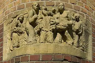 Het is een gevelsteen ontworpen door Jan Heyens, dat geplaatst werd in wooncomplex De Dageraad in Amsterdam. Dat complex is van de hand van Michel de Klerk en Piet Kramer, die het ontwierpen in een grillige vorm van de Amsterdamse School. Binnen die stijl heeft symmetrie een belangrijke rol, net zoals in het stratenplan ter plekke in de vorm van Plan Zuid van Hendrik Petrus Berlage. De oogst heeft dan ook een tegenhanger in het beeld Dr. F.M. Wibaut aan het Henriëtte Ronnerplein. Het Thérèse Schwartzeplein is volgens diezelfde redenering de tegenhanger van dat plein, met de Pieter Lodewijk Takstraat als spiegelas.