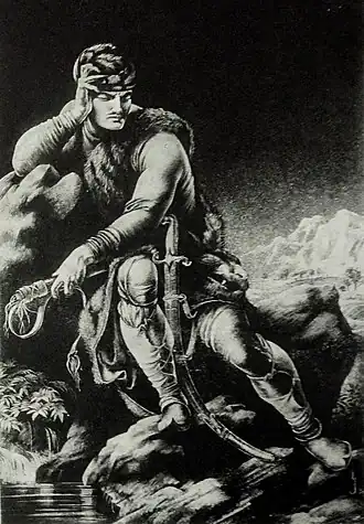 - ↑ Roestaveli 1912, p. 2, kwatrijn 7, I sat me down, I, Rust’haveli, indited a poem, my heart I pierced with a lance..