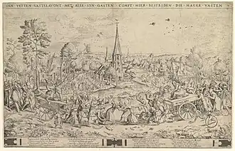- ↑ Sabine Pénot, Een originele blik op Pieter Bruegels Strijd tussen Carnaval en Vasten, in: Voorwerp van gesprek. De wereld van Bruegel., p. 18