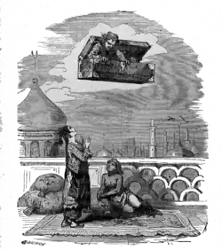 Een rijke koopman krijgt een daalder voor elke stuiver die hij uitgeeft, zijn zoon erft het geld. Hij gaat naar gemaskerde bals en maakt vliegers van bankbiljetten. Hij houdt slechts tien stuivers over en zijn vrienden kijken niet meer naar hem om. De jongen bezit slechts zijn pantoffels en kamerjas. Van de trouwste vriend krijgt hij een koffer en omdat hij niets bezit, gaat hij er zelf in zitten. De jongen vliegt door de schoorsteen en komt in het land van de Turken terecht. Hier valt hij niet op, iedereen loopt in kamerjas en pantoffels.