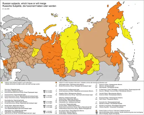 - 1 juli 2007: Korjakië en oblast Kamtsjatka tot kraj Kamtsjatka (referendum gehouden op: 23 oktober 2005).