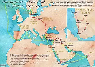 - Carsten Niebuhr, cartograaf en astronoom, Duitser. Hij zou kaarten produceren van tot dan toe ongeëxploreerde gebieden en astronomische observaties doen.
