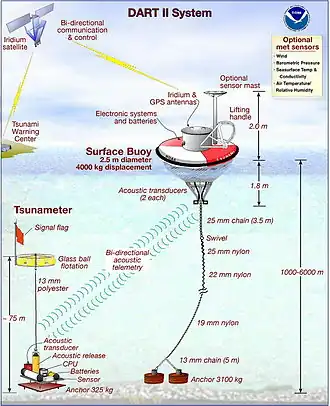 DART is een geavanceerde variant van het TWSP-systeem. Het wordt beheerd door de Amerikaanse National Oceanic Atmospheric Administration (NOAA) op Hawaï. Het systeem bestaat uit een zestal druksensoren die aangebracht zijn op de bodem van de Grote Oceaan. Iedere sensor zendt, middels akoestische signalen, informatie over drukveranderingen in de oceaan naar een communicatieboei die bij iedere sensor aanwezig is. Deze boei stuurt deze gegevens door naar het NOAA, waar een nauwkeurige, driedimensionale kaart van de oceaan in de buurt van de Amerikaanse kust opgebouwd wordt.