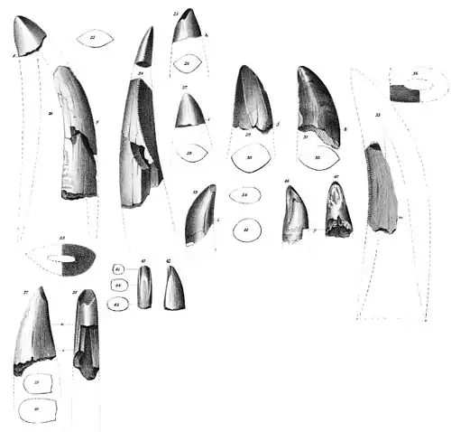 - Leidy, J., 1868, "Remarks on a jaw fragment of Megalosaurus", Proceedings of the Academy of Natural Sciences of Philadelphia, 1870: 197-200