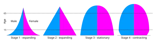 De economische ontwikkeling van een land of de industriële revolutie zorgen voor het inzetten van de demografische transitie. Leefomstandigheden, hygiëne en gezondheidszorg verbeteren. Hierdoor verlaagt het sterftecijfer drastisch. Met name de kindersterfte neemt af. Het geboortecijfer blijft hierbij achter en blijft nog steeds hoog. Hierdoor versnelt de bevolkingsgroei. Bovendien is het mogelijk dat dit effect versterkt wordt doordat immigranten op het economische succes afkomen en dus ook het migratiesaldo zijn steentje bijdraagt. De verstedelijking neemt hierdoor toe. Het krijgen van veel kinderen wordt hierdoor ook steeds minder lonend, bovendien kosten kinderen in een moderne economie ook meer en meer geld. Het is mogelijk dat het economisch succes leidt tot het instellen van betere pensioenregelingen waardoor kinderen niet of minder voor hun ouders hoeven te zorgen. Door de verstedelijking krijgen ook nieuwe ideeën hun ingang en vindt ontkerkelijking plaats. Voorbehoedsmiddelen worden meer en meer geaccepteerd en de seksuele revolutie en vrouwenemancipatie doen hun intrede. Door deze redenen daalt in een later stadium ook het geboortecijfer, waardoor de bevolkingsgroei weer afneemt.