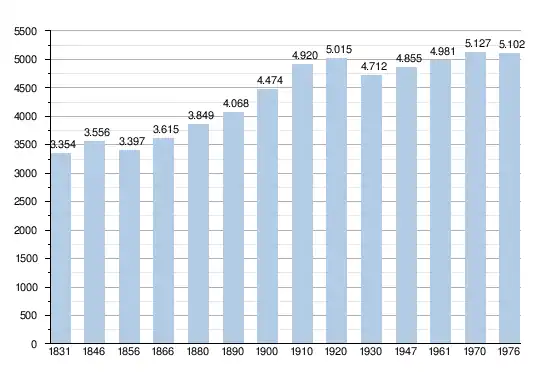 - Bronnen:NIS, Opm:1831 tot en met 1970=volkstellingen; 1976 = inwoneraantal op 31 december