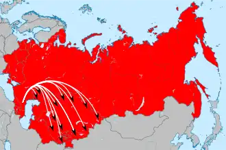- ↑ POLIAN, P., Against Their Will: The History and Geography of Forced Migrations in the USSR, Budapest, New York: Central University Press, 2004.