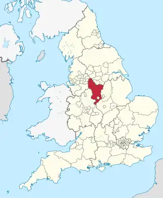 Het graafschap grenst aan Greater Manchester, West Yorkshire, South Yorkshire, Nottinghamshire, Leicestershire, Staffordshire en Cheshire.
