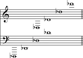 Musicologische notatie Helmholtznotatie Octaafnaam Frequentie (Hz) D♭-1 D♭,,, Subsubcontra-octaaf 8.662 D♭0 D♭,, Subcontra-octaaf 17.324 D♭1 D♭, Contra-octaaf 34.648 D♭2 D♭ Groot octaaf 69.296 D♭3 d♭ Klein octaaf 138.591 D♭4 d♭′ Eengestreept octaaf 277.183 D♭5 d♭′′ Tweegestreept octaaf 554.365 D♭6 d♭′′′ Driegestreept octaaf 1108.731 D♭7 d♭′′′′ Viergestreept octaaf 2217.461 D♭8 d♭′′′′′ Vijfgestreept octaaf 4434.922 D♭9 d♭′′′′′′ Zesgestreept octaaf 8869.844