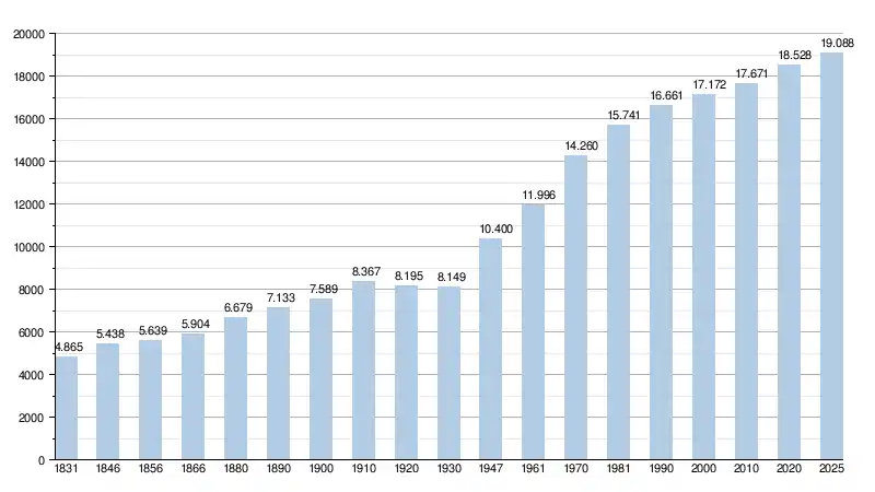 Alle historische gegevens hebben betrekking op de huidige gemeente, inclusief deelgemeenten, zoals ontstaan na de fusie van 1 januari 1977.