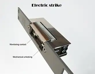 - Arbeidsstroomprincipe (spanningsloos vergrendeld): De schoot van het deurslot wordt ontgrendeld als er elektrische stroom gaat lopen en is het mogelijk de deur te openen. In tegenstelling tot ruststroom kan bij stroomuitval de deur niet geopend worden.