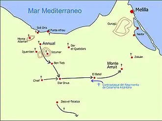 In januari 1921 was het Spaanse leger opgerukt tot het dorp Annual, circa 80 kilometer ten westen van Melilla. Daar werd een groot kamp gebouwd voor vele duizenden militairen.