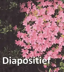 Het diapositief kan worden gebruikt als grafisch middel voor de opmaak; met betrekkelijk eenvoudige middelen wordt een onderscheidend effect bereikt dat de aandacht kan trekken. Een bekend voorbeeld van diapositief in deze zin zijn de omslagen van de STOA-reeks uit de jaren zestig van G.A. van Oorschot. Het stofomslag had bovenaan het voorplat een brede gekleurde balk, waarin de letters STOA waren uitgespaard in de kleur (grijs) van het gehele voorplat. In contrast daarmee was de belettering van auteursnaam, titel en uitgeverscolofon in gewone druk.