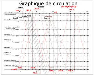 De paden kunnen verschillen in snelheid en aantal stops, afhankelijk van het type trein (goederentrein, stoptrein, intercity, etc).