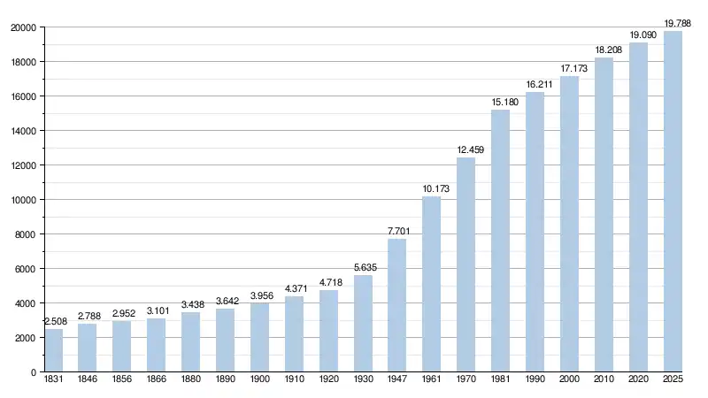 Alle historische gegevens hebben betrekking op de huidige gemeente, inclusief deelgemeenten, zoals ontstaan na de fusie van 1 januari 1977.