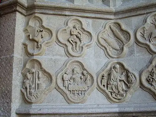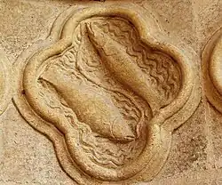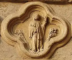 Buitenkant (links) van de linker grondmuur van het Saint-Firminportaal